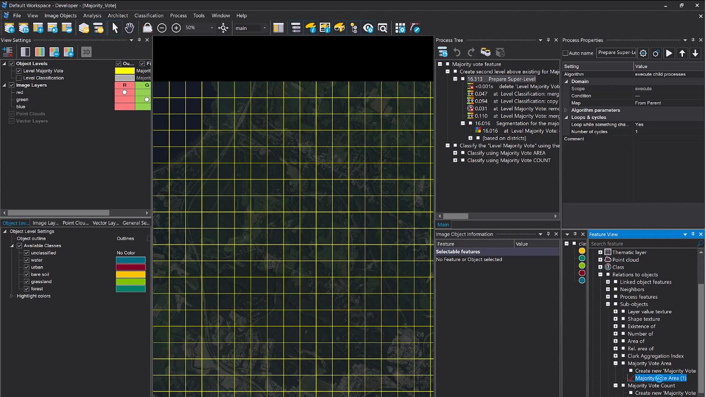 2. 创建一个用于存放多数投票特征结果的父层级(Super-Level),并进行棋盘分割(对象大小为150),父层级的结果如下