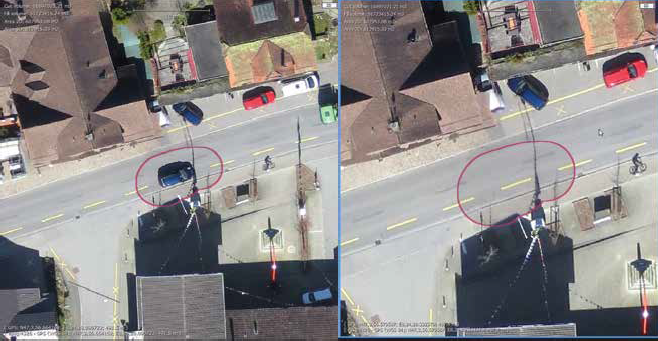 允许选择一个区域并指定哪些影像应该用于正射影像镶嵌生成 – 解决可能出现的视觉问题,删除在正射影像镶嵌中你没有注意到的移动汽车/人的影像。