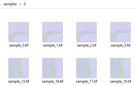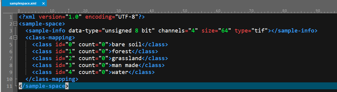 指定样本的地物特征类别,存放样本格式(TIF或RAW),样本数量、样本包大小、样本采集使用的影像波段,以及样本存放路径。
