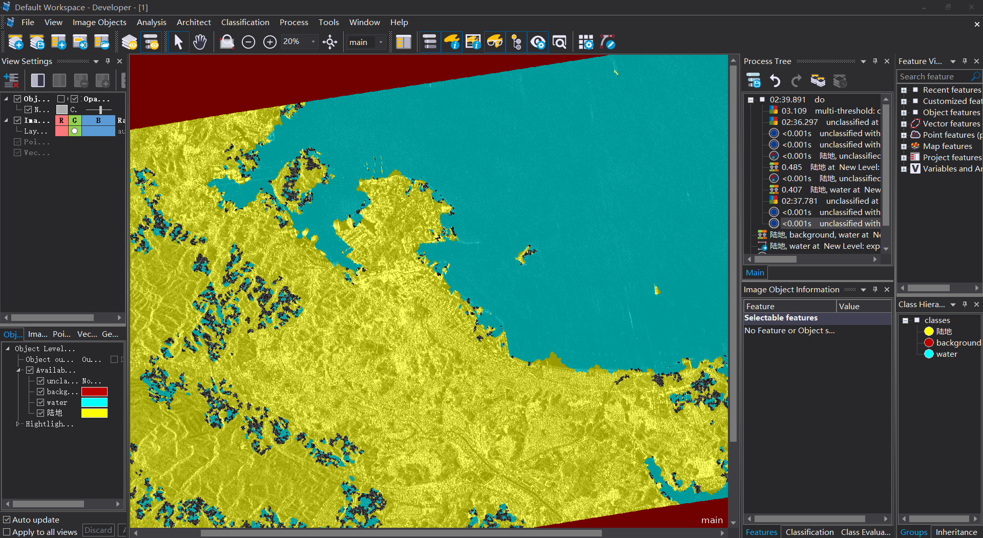 9 为了分割更清晰的海岸线---将“未分类”进行二次分割,再对“陆地”和“水体”进行再次分类