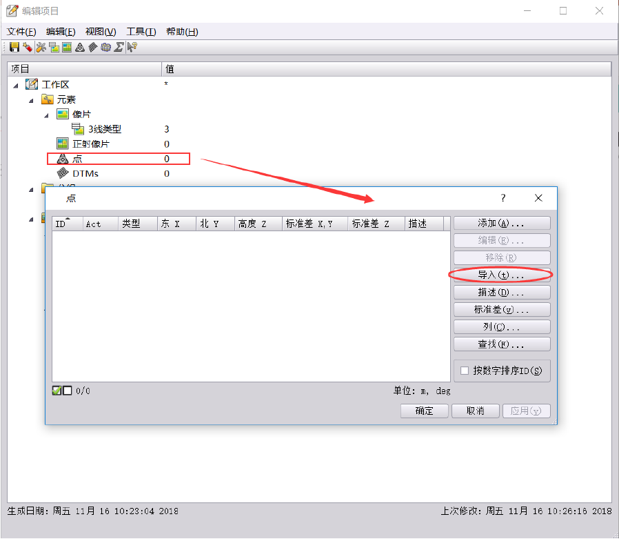 3.4 在有控制点文件的情况下,在工程编辑器 “Project Editor” 中,双击“Points”导入控制点,并设置控制点的标准差。