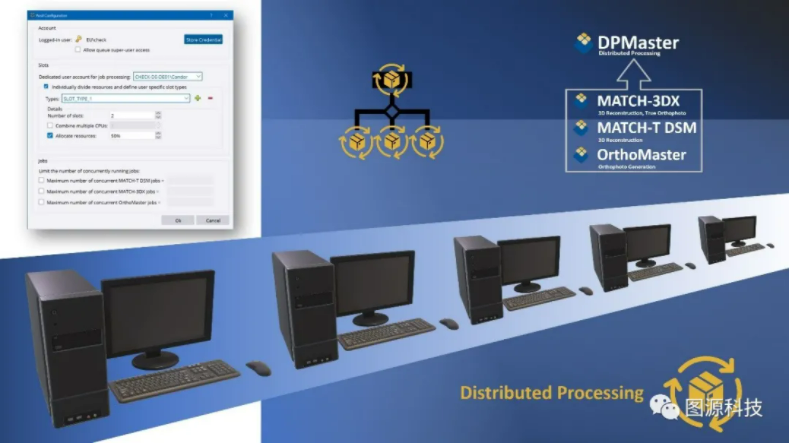 考虑到航空摄影测量项目的规模和影像数量的增加,当前用户对将数据处理分配和扩展到更多计算机以提高性能并满足紧迫的项目工期更加感兴趣。